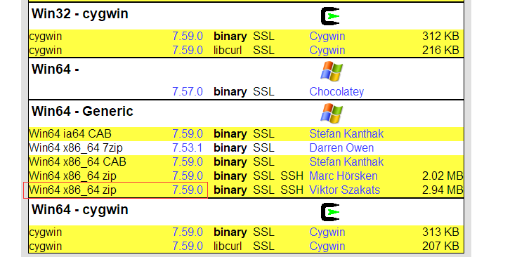 1:進入curl官網下載合適的版本,我這裡下載的是Windows 64位的curl.