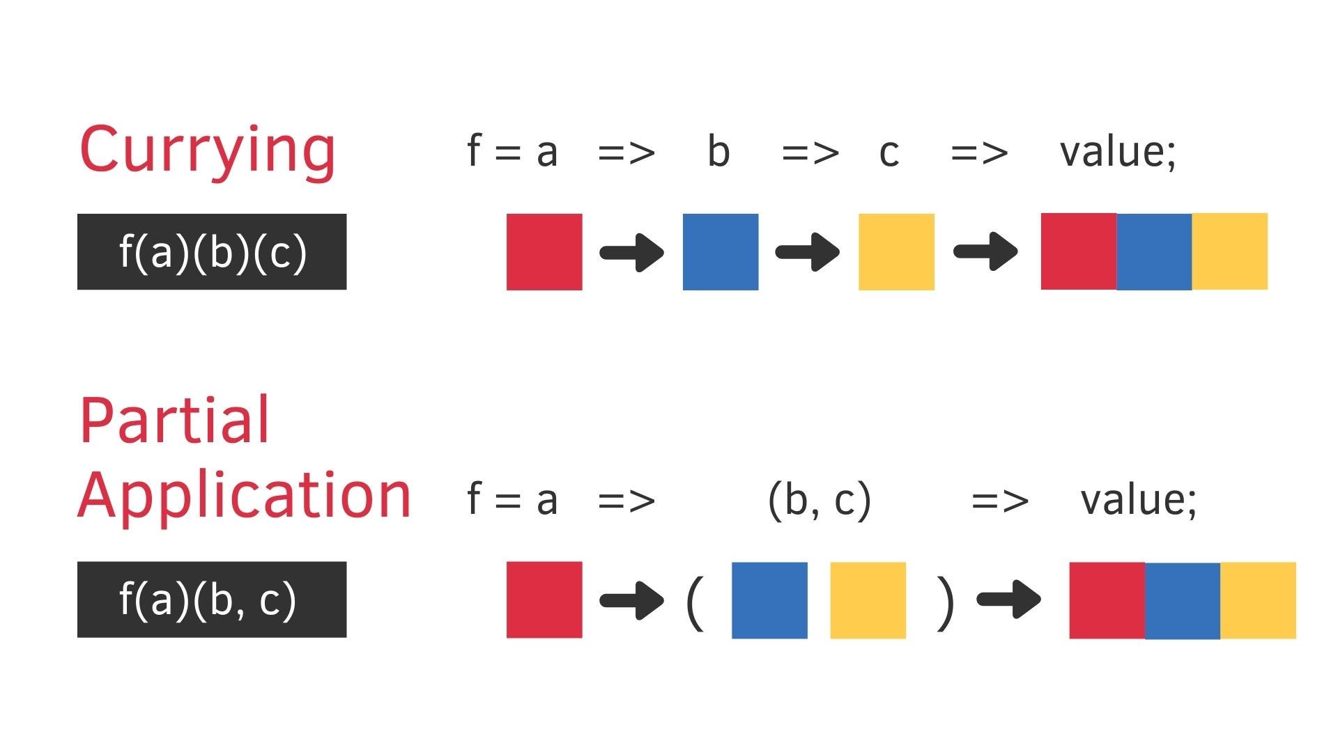 ║ ║ currying ║ Partial application ║